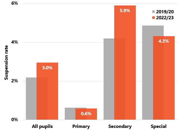 - Suspensions citing persistent disruptive behaviour as a reason have seen the largest increase