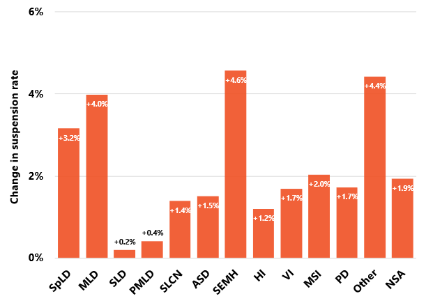 Figure 4 – Change in suspension rate from the 2018/19 academic year for SEN pupils with different primary needs