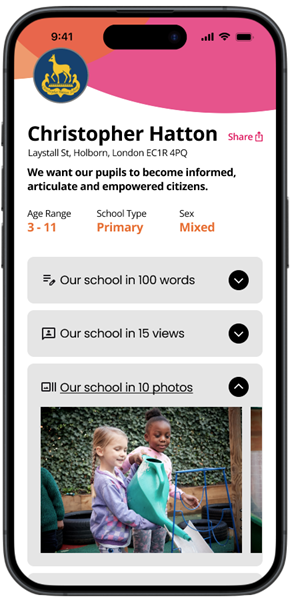 Over the last year we have had the privilege of working with Camden Learning on a ground-breaking school report initiative. Supported by the tremendous partnership of schools across the borough and in consultation with parents, we have designed a new way of displaying a rounded picture of a school. The report contains information about all aspects of life at the school, covering various aspects of what it feels like to be a pupil or a parent of the school. While the latest Ofsted report and DfE performance data about the school’s performance is shown, the breadth of information means parents can really get an understanding of what’s important to them, including: