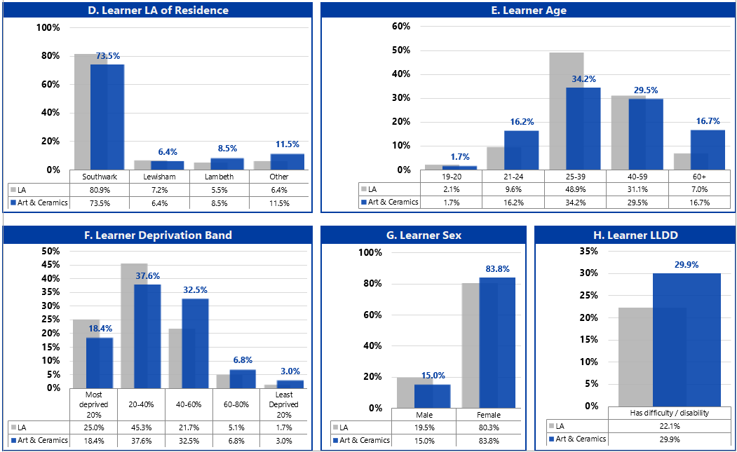 The Ofsted inspection after we were first commissioned, and all conducted since, have resulted in a Good outcome for the Adult Learning Service, when data was cited as a particular strength. We have met with inspectors on each occasion to discuss the processes we set up around data management, and the strategic use of data across the Service and received positive feedback on the approaches taken. We have maintained a strong working relationship with the team at Southwark, and been closely involved in the onboarding and skilling up of new staff members, including a new head of Service.